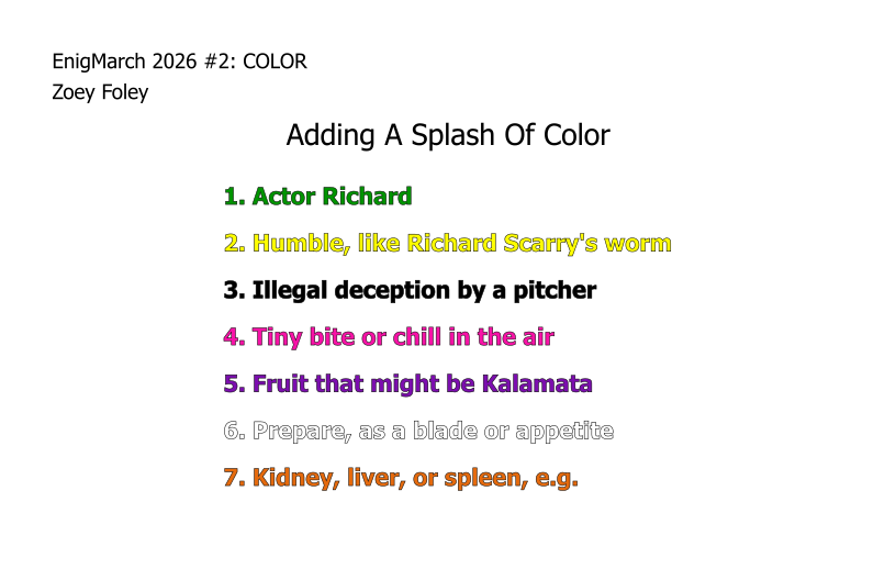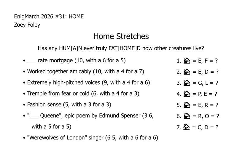 Index of EnigMarch 2023 Puzzles